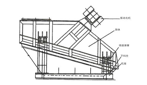 DZSF系列重型高效电机振动筛的筛面部分倾斜安装,安装倾角为10°-20°。