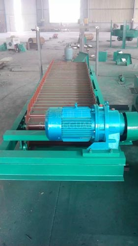 链板机由头部机架、头部护罩、主动链轮组、输料装置、中部机架、尾部机架、改向链轮组,链板托轮组和驱动装置组成。